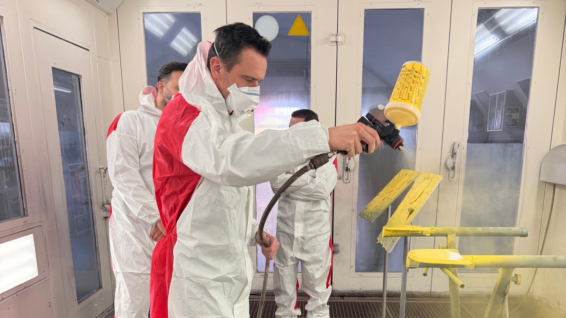 Während der Schulungsreihe ging es nicht nur um theoretisches Wissen, sondern vor allem um praktische Erfahrung. Bei der Abschluss-Schulung konnten unsere Filialleiter selbst zur Lackierpistole greifen und ihre Fähigkeiten unter professioneller Anleitung weiter vertiefen.